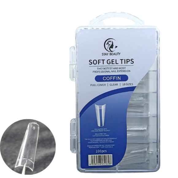 STAY BEAUTY SOFT GEL TIPS UNHA POSTIÇA COM 100 TRANSPARENTE